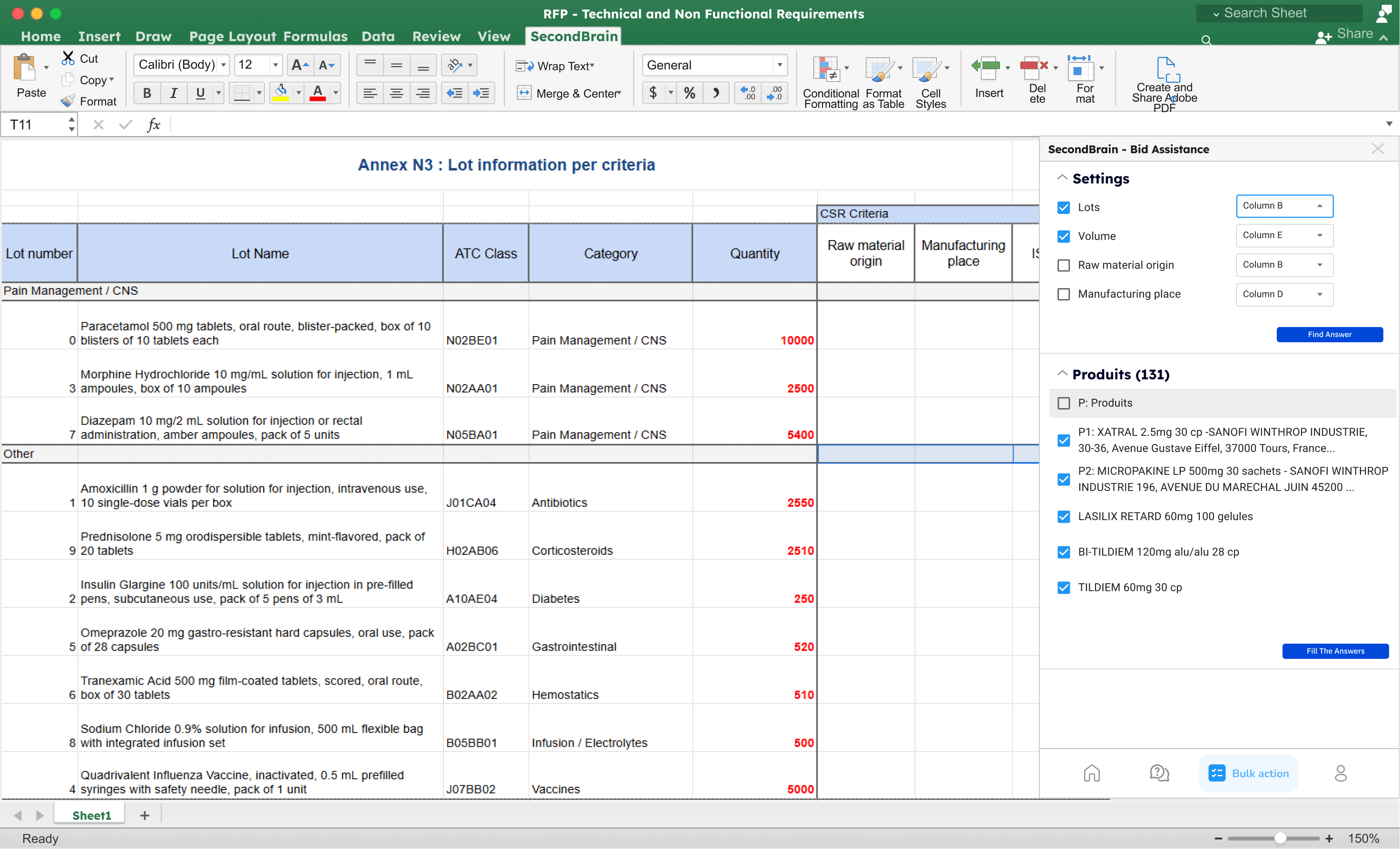 Streamline your entire tender workflow with AI. Automatically analyze complex tender documents, identify key informations, extract all the questions, and generate high-quality, compliant responses in record time
