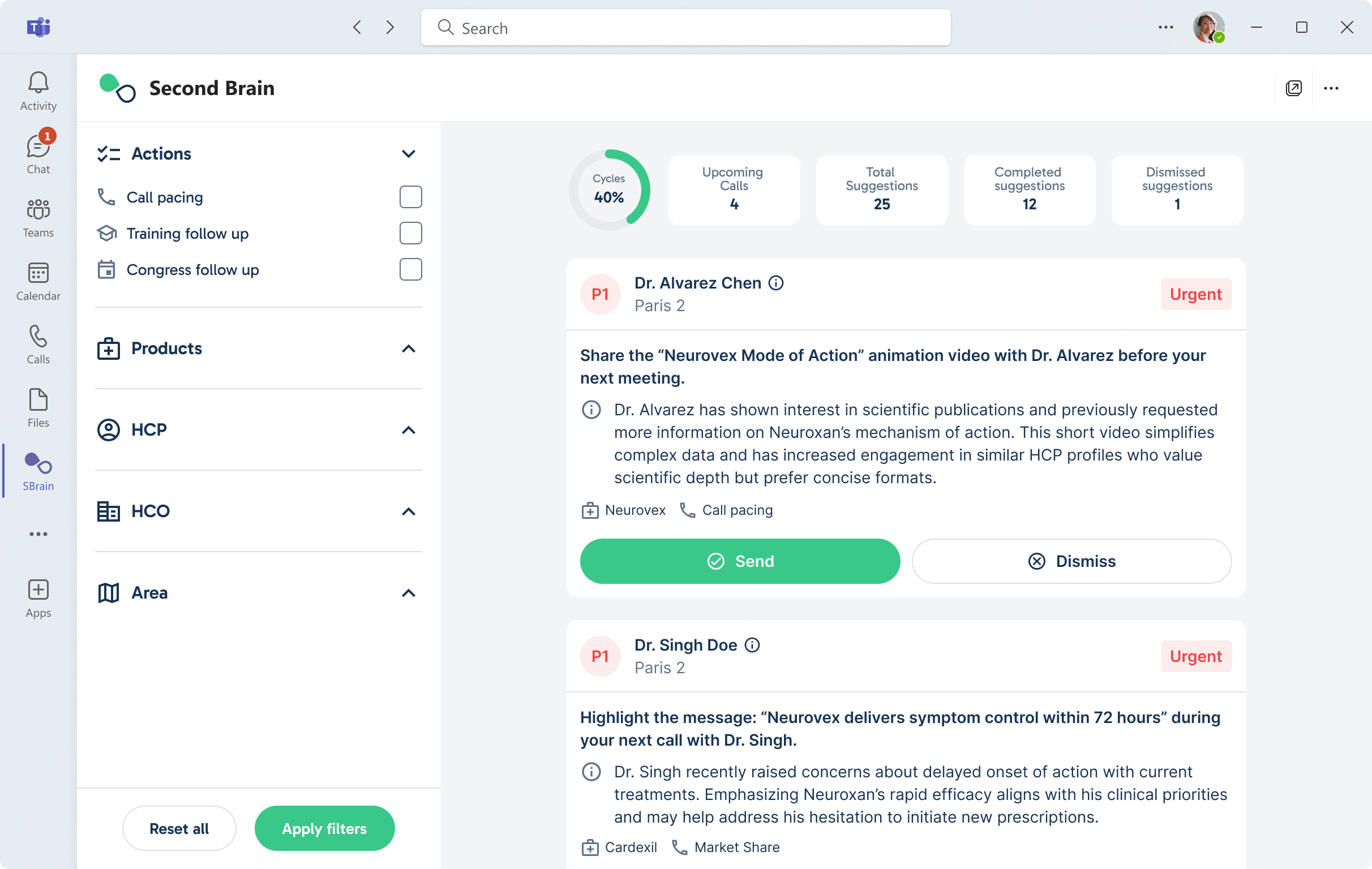 AI Omnichannel Suggestion Engine – Recommends the next best action, channel, content, and insights for each HCP to maximize engagement